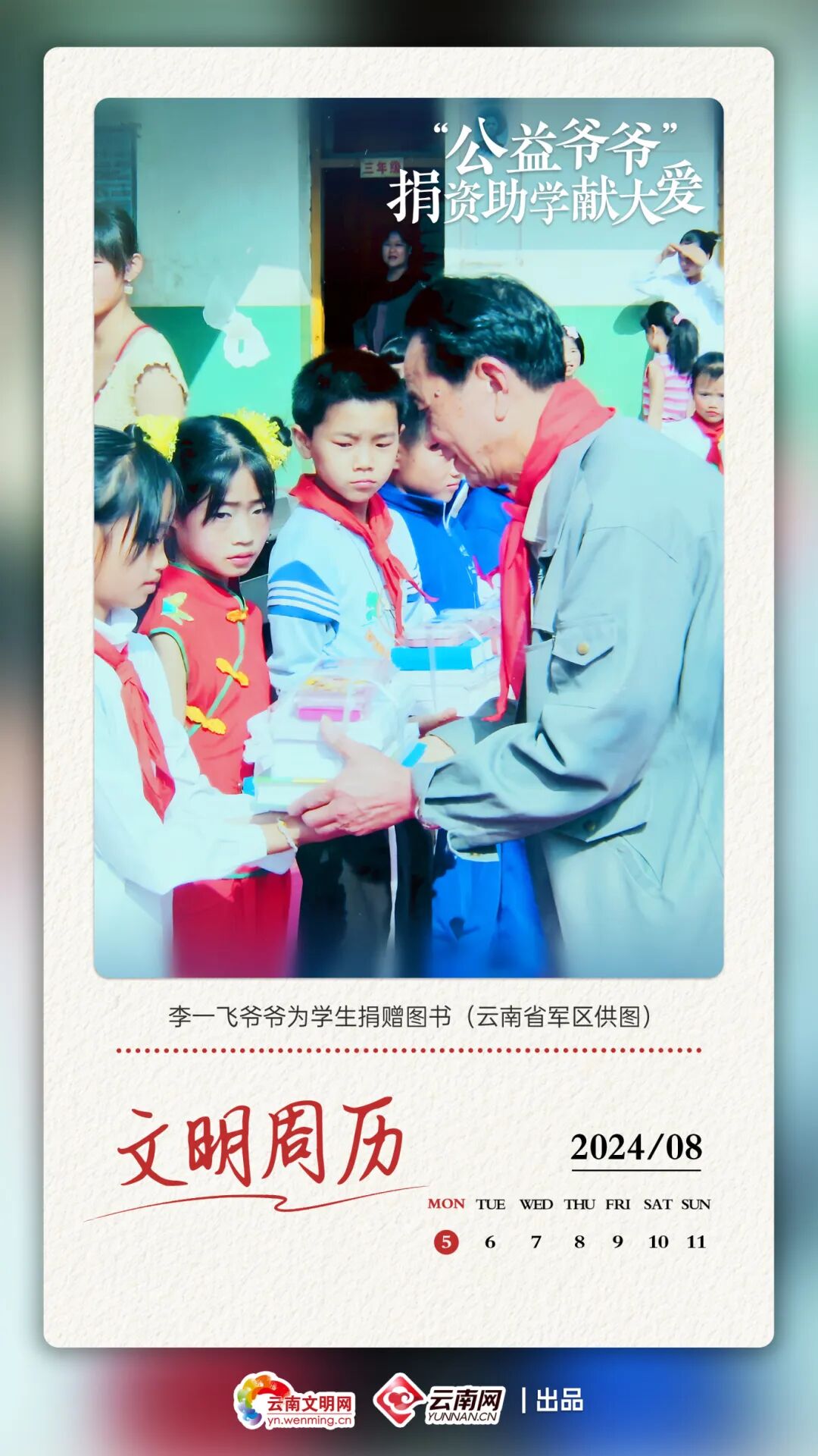 云南文明網每周一推出“文明云南”周歷海報,聚焦云南精神文明建設的新風貌新成效,以主題周歷海報生動展現“文明云南”的時代風采,歡迎分享使用。